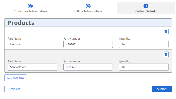 If you followed along on the last blog, I am going to use the same form and workflow that I built out there. If you do not, don’t worry, you can use this approach with any form where you have a repeating section and want to add it into you document generation. I went ahead and added a few more controls on the form to collect some “customer data”. See below on what was added.
