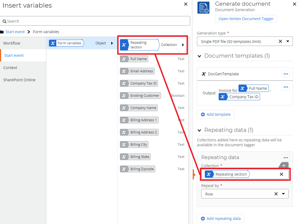 2 thoughts on “How To: Add Repeating Section Data to Document Generation in Nintex Workflow Cloud”
